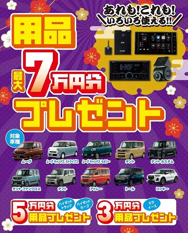 新車ご成約時にお選びいただいた用品77,000円(税込)を割引させていただきます✨
